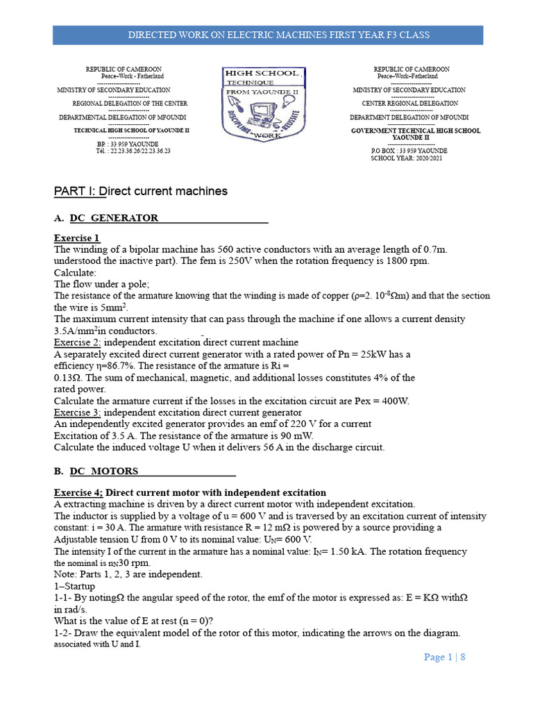 Directed Work Electric Machines PF3 | PDF | Electric Motor | Transformer