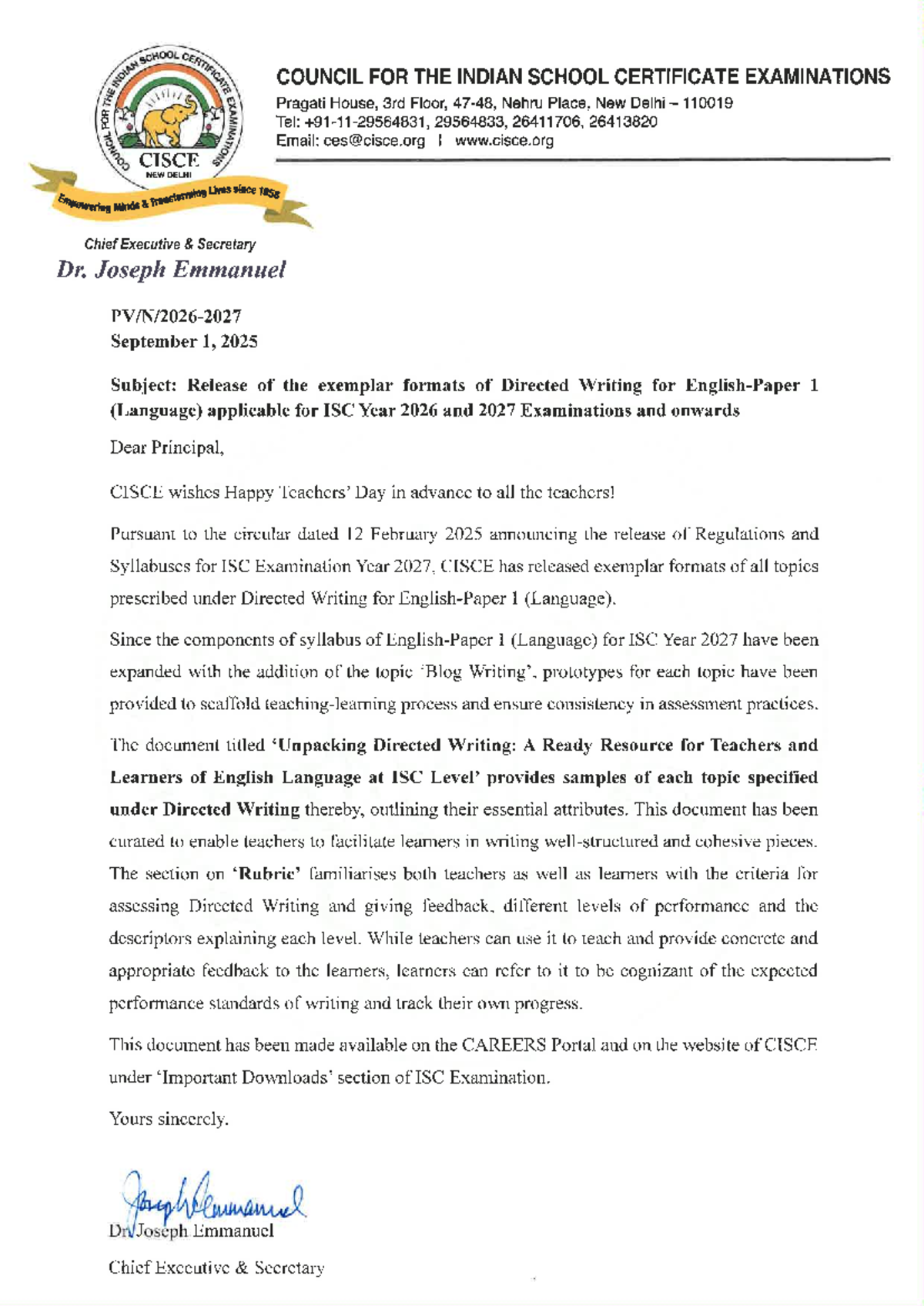 CISCE ISC 2027 Circular: Exemplar Formats for Directed Writing - Studocu