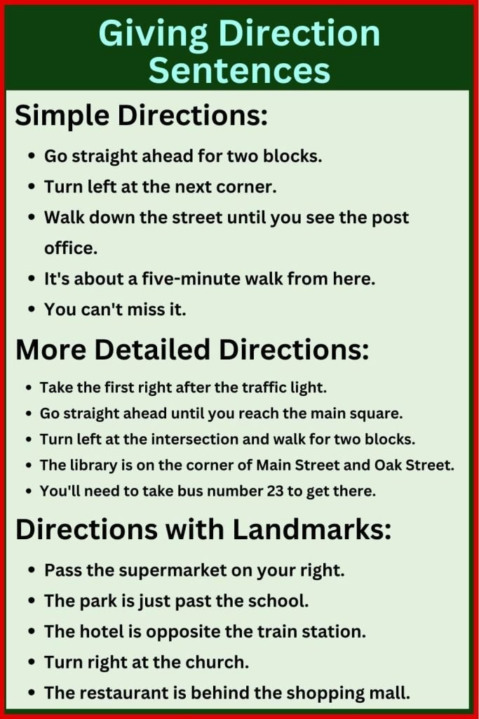 Direction Example Sentences | How to Ask for and Give Directions in ...