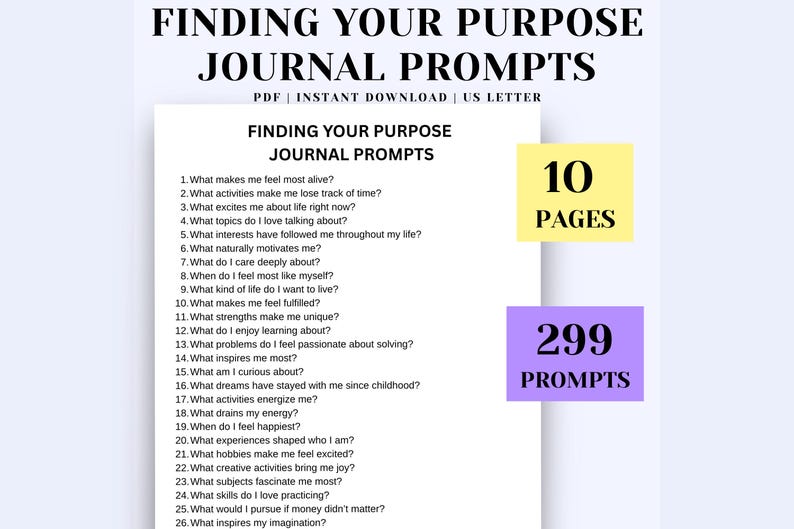 Finding Your Purpose Journal Prompts, Life Purpose Workbook, Self ...