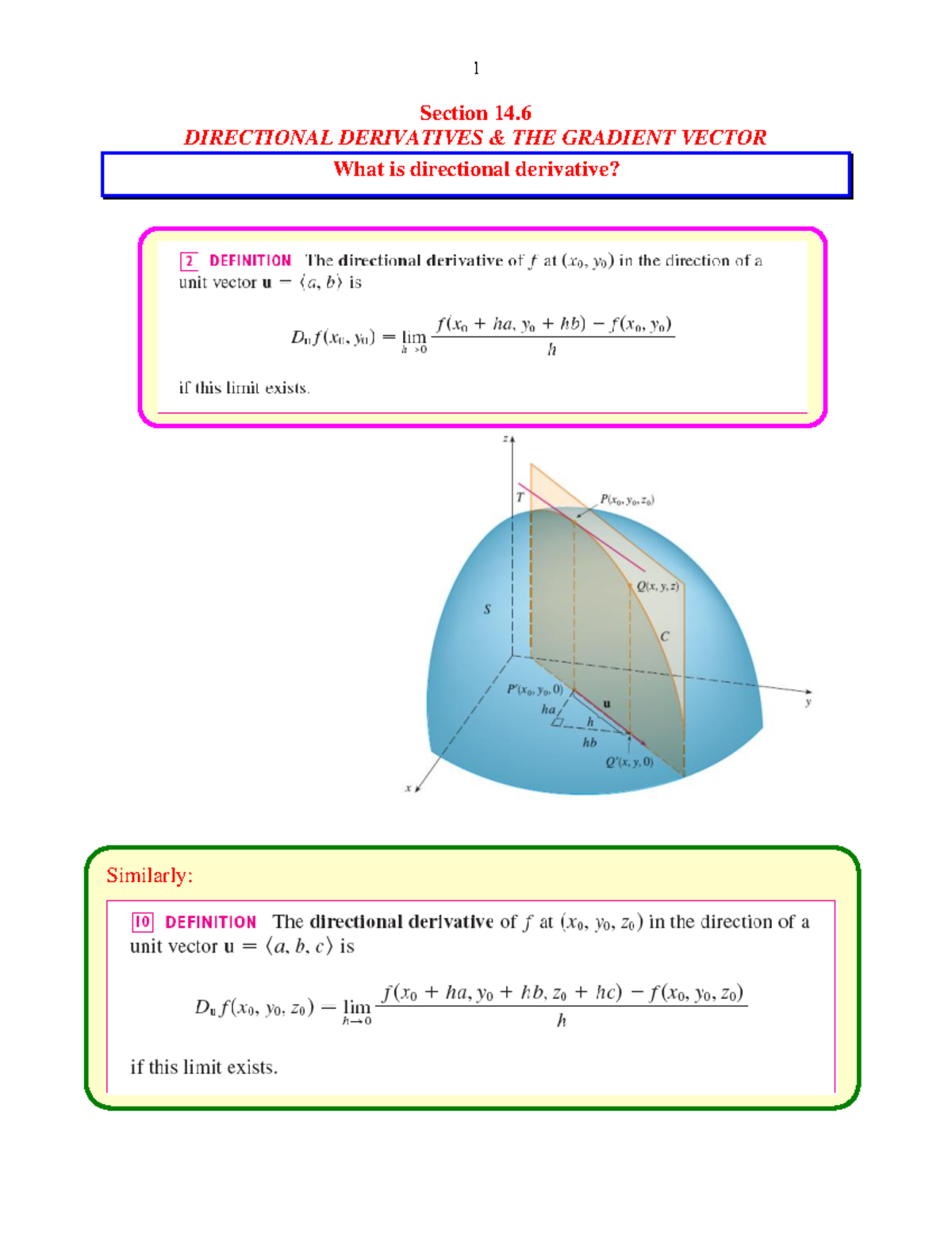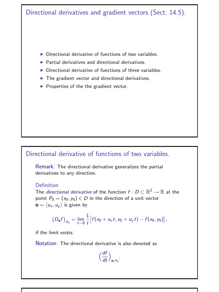 Directional Derivatives and Gradient Vectors (Sect. 14.5) .: Remark | PDF