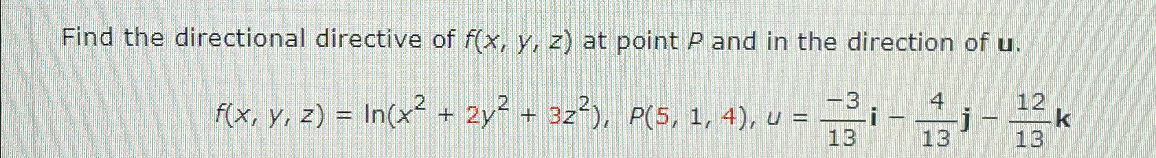 Solved Find the directional directive of f(x,y,z) at point | Chegg.com