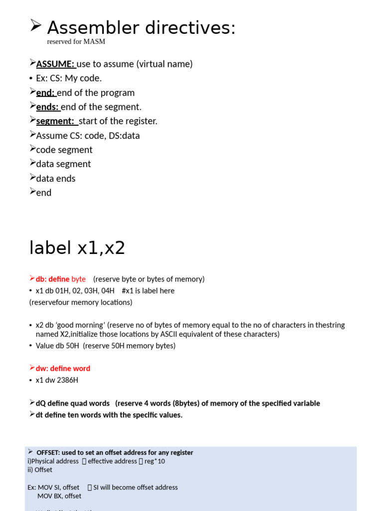 8086 Assembler Directives Guide | PDF | Assembly Language | Byte