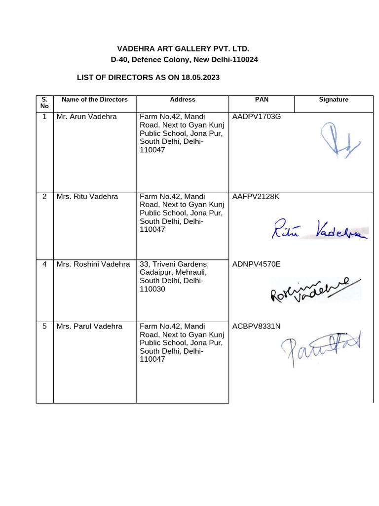 List of Directors Sign VAGPL | PDF
