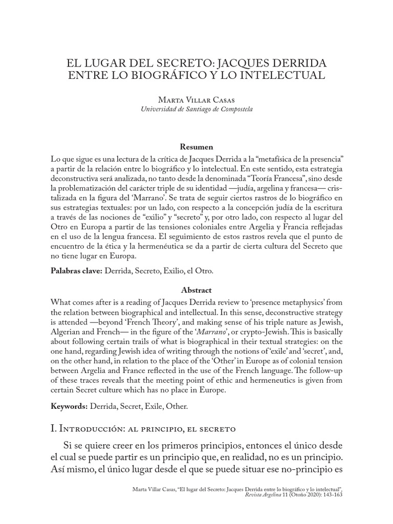 Derrida: Secreto, Exilio y Identidad | PDF | Escritura | Jacques Derrida