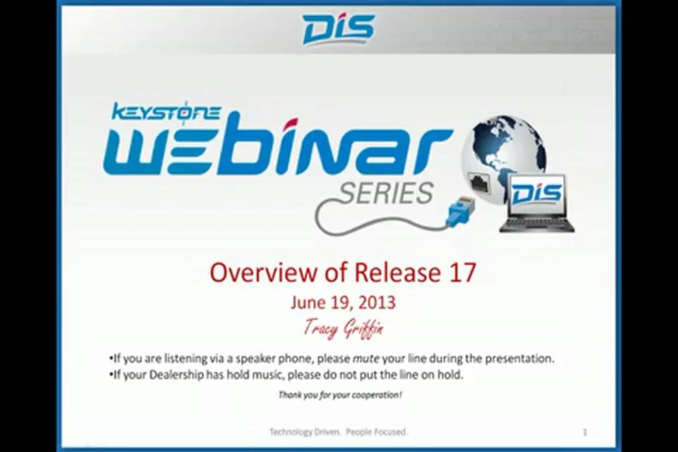 DIS Keystone Webinars - Overview of Release 17 (June 2013) on Vimeo