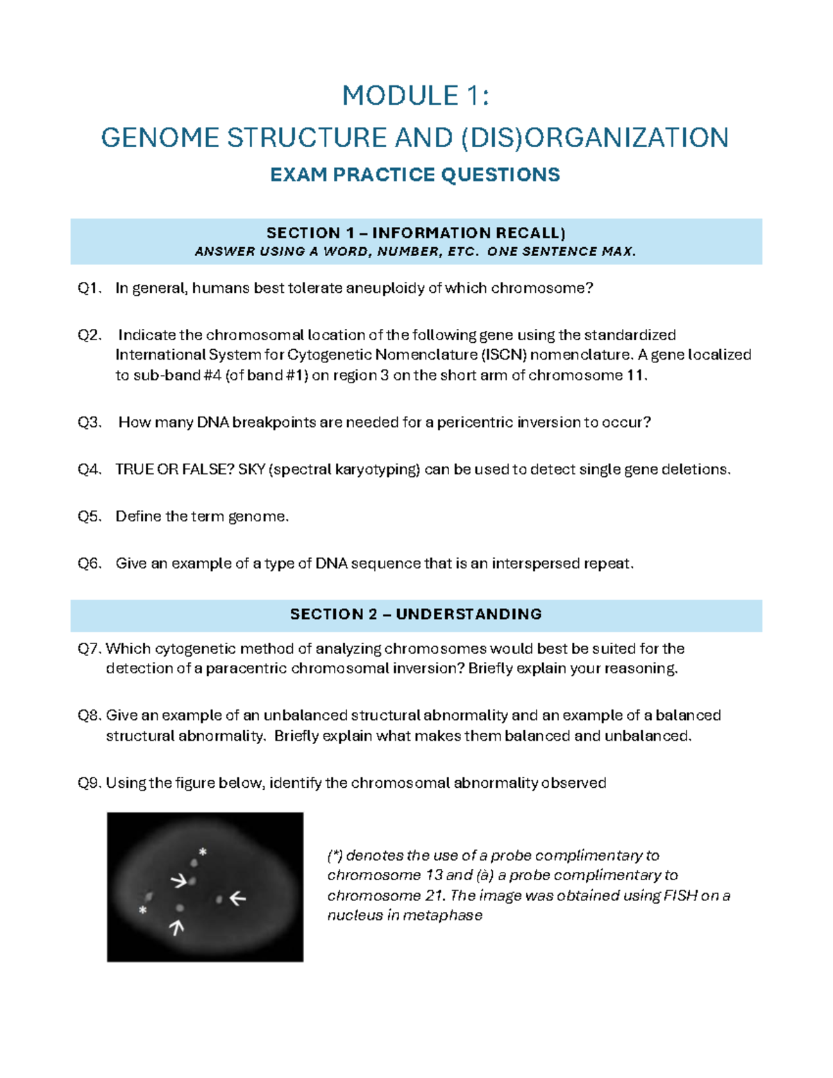 MODULE 1: Genome Structure & (Dis)Organization Exam Practice Qs - Studocu