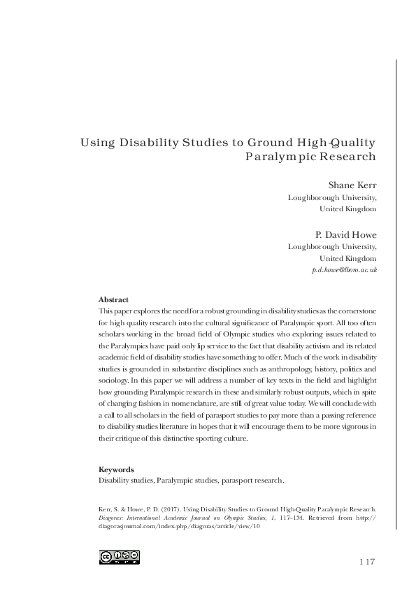 (PDF) Using Disability Studies to Ground High-Quality Paralympic Research