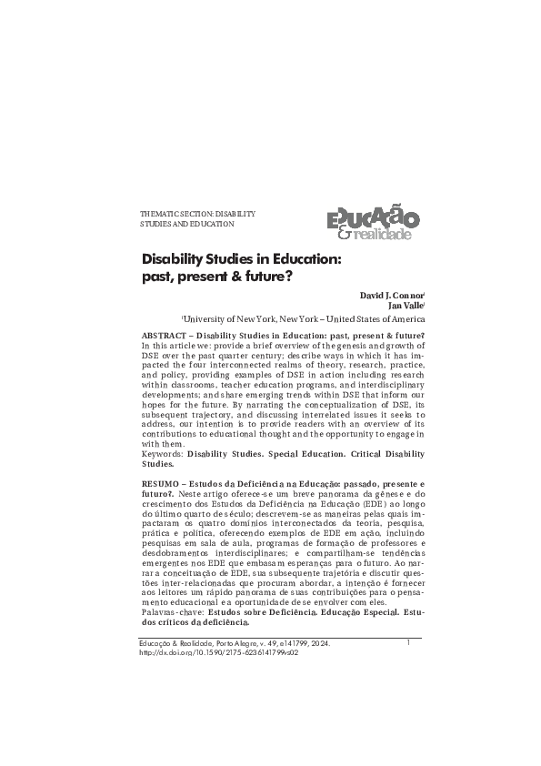 (PDF) Disability Studies in Education: Past, Present & Future?
