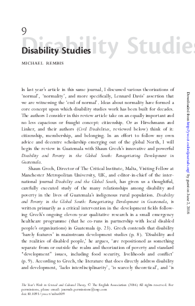 (PDF) "Disability Studies," The Year's Work in Critical and Cultural ...