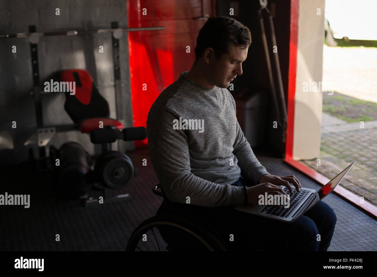 disabled man in wheelchair using notebook computer Stock Photo - Alamy
