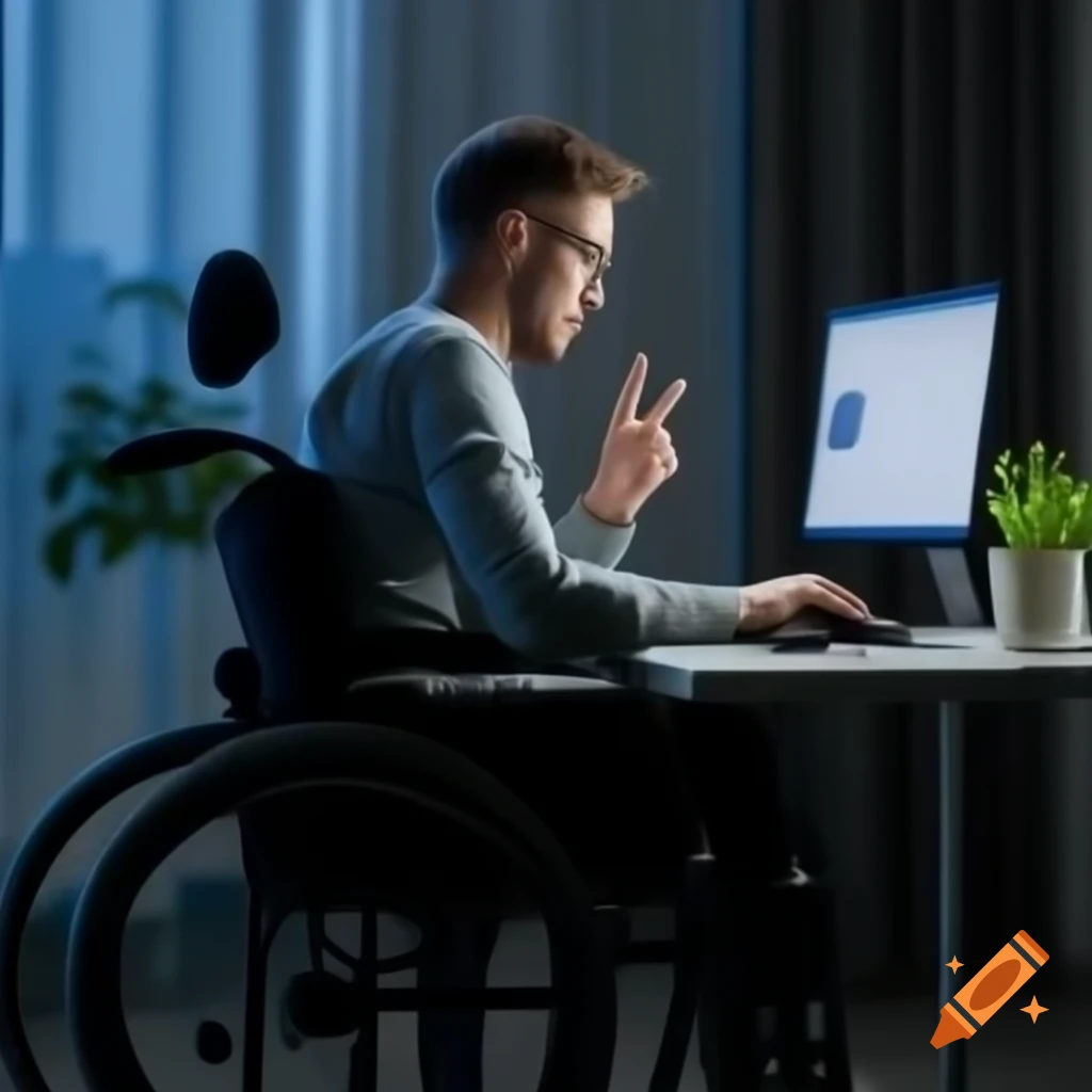 A man in a wheelchair using a computer Suitable for disability and ...