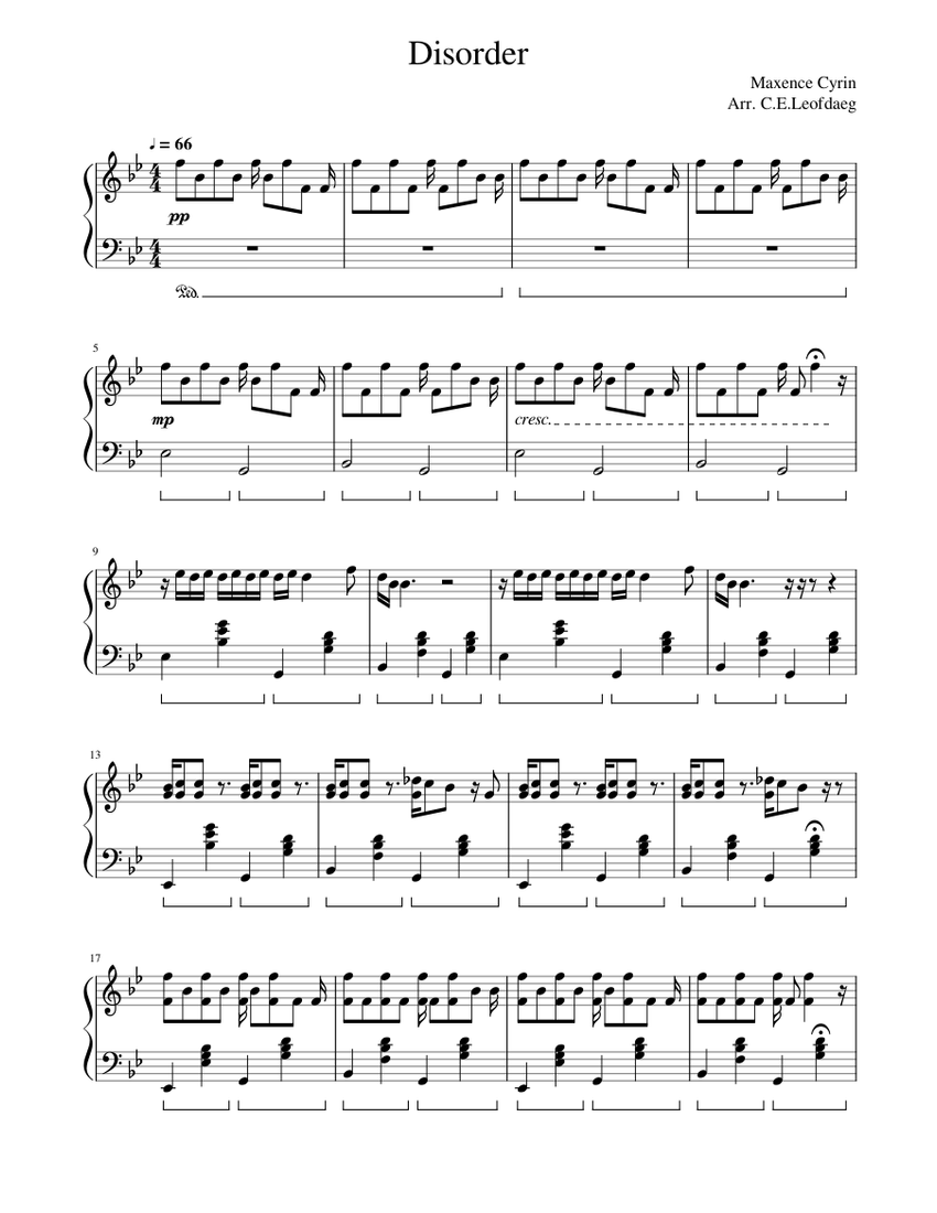Disorder sheet music for voice, piano or guitar (PDF)