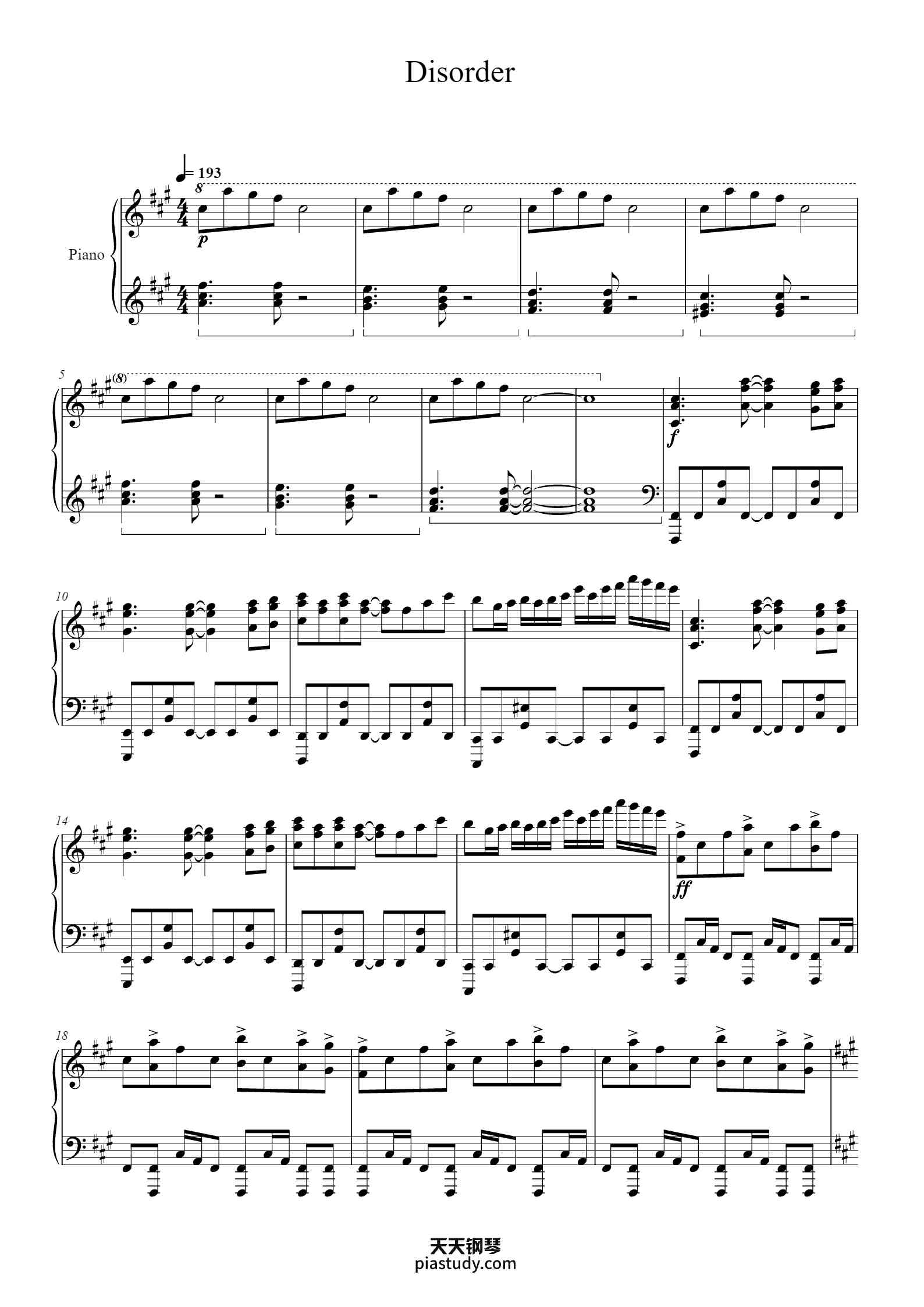 Disorder Sheet Music for Piano (Solo) | MuseScore.com