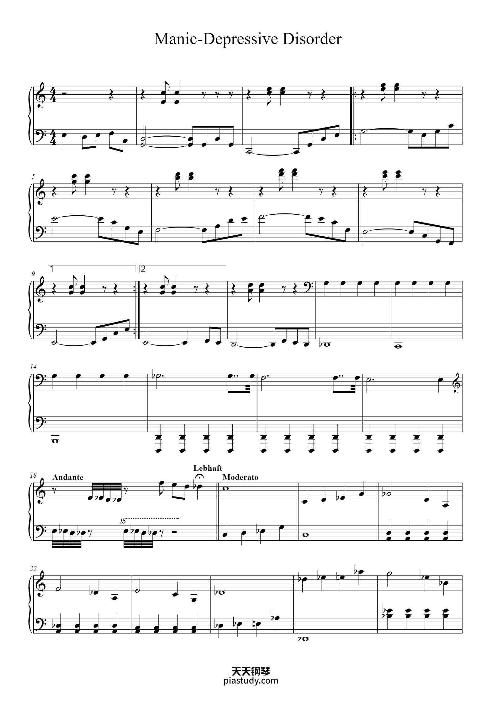 'Manic-Depressive Disorder' - Beginner Piano Sheet Music by W. Li | TOPiano
