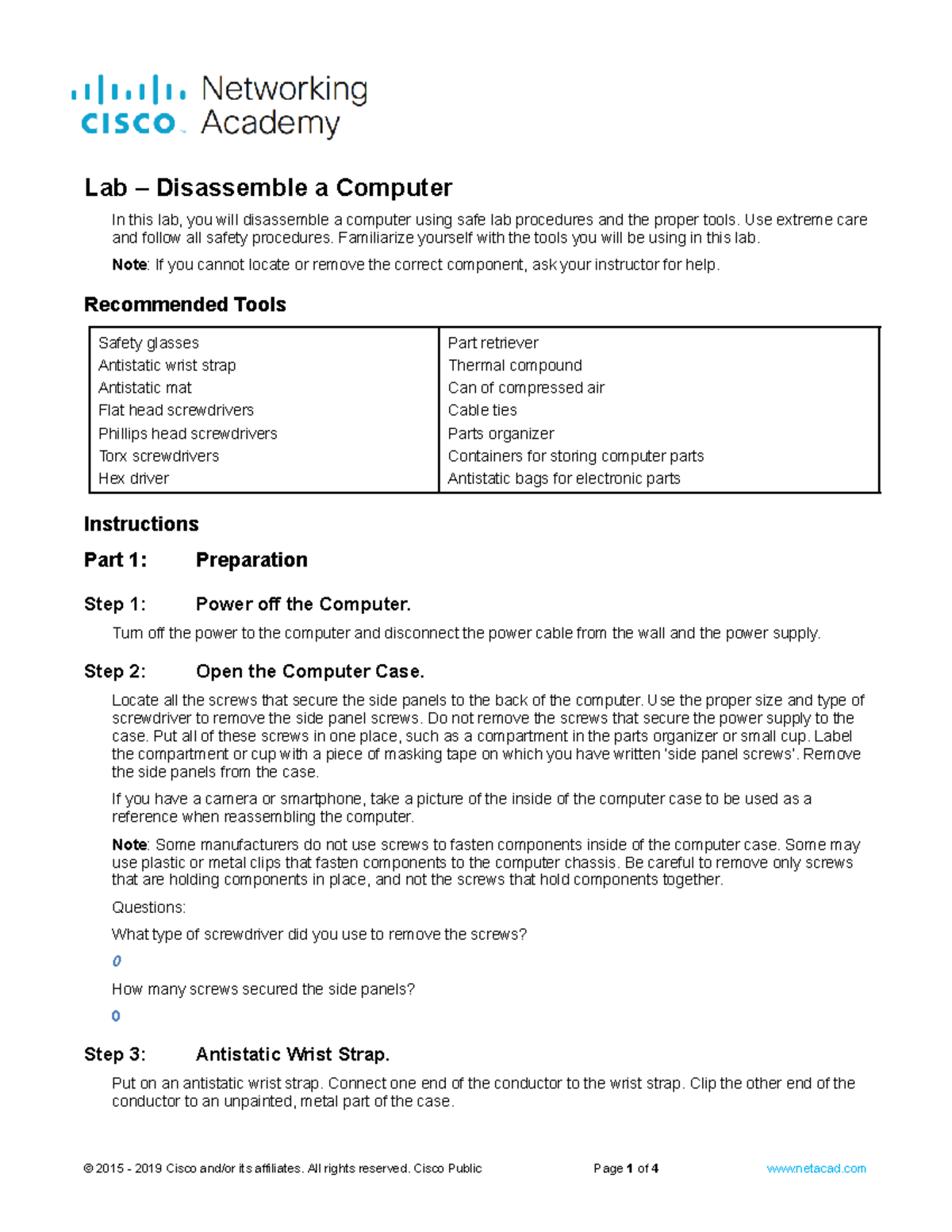 Lab - Disassemble A Computer | PDF | Screw | Hard Disk Drive