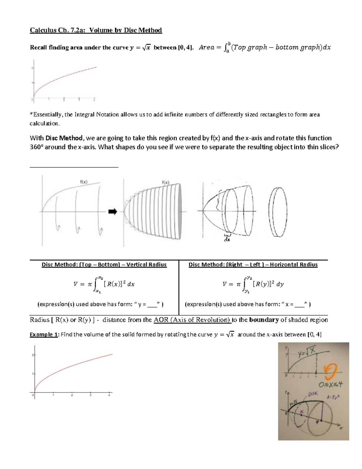 Calculus 101: Ch. 7.2a - Volume via Disc Method Notes - Studocu