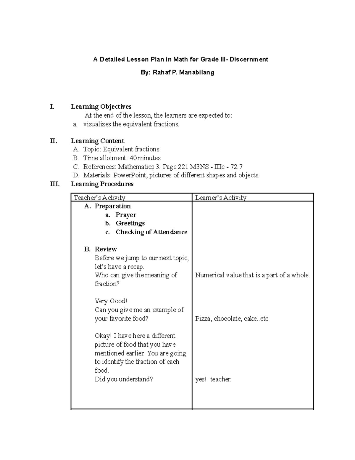 Copy of Lesson PLAN .docx - A Detailed Lesson Plan in Math for Grade ...