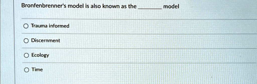 SOLVED: Bronfenbrenner's model is also known as the model Trauma ...