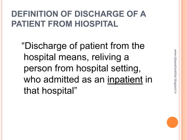 PPT - Discharge PowerPoint Presentation, free download - ID:262985
