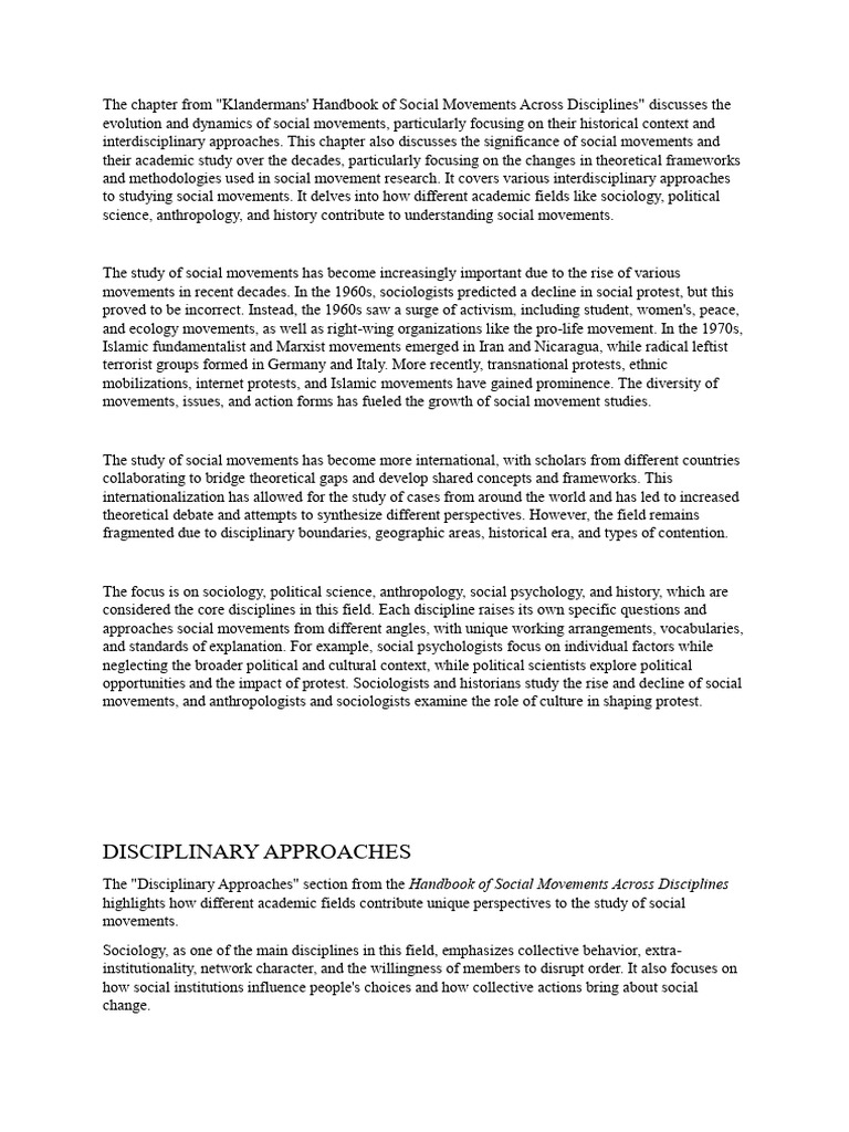 Disciplinary Approaches: Handbook of Social Movements Across ...