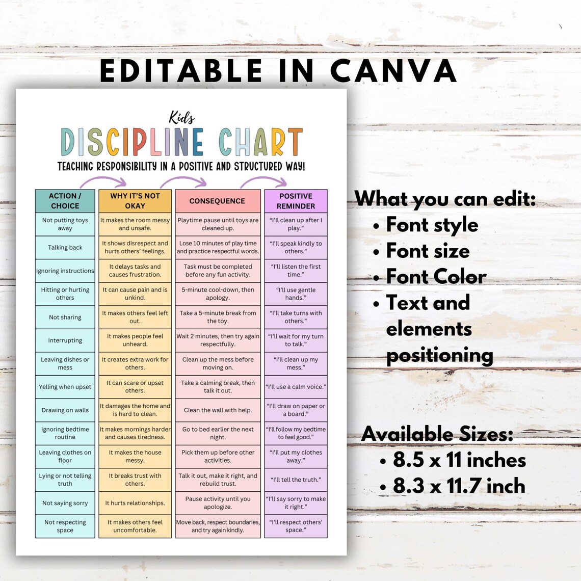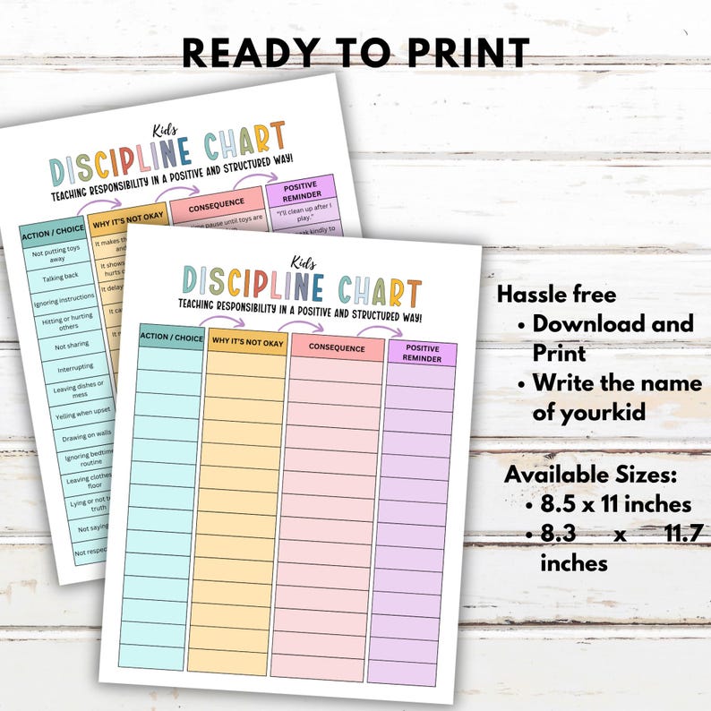 Behavior Discipline Chart Printable Editable Downloadable ...