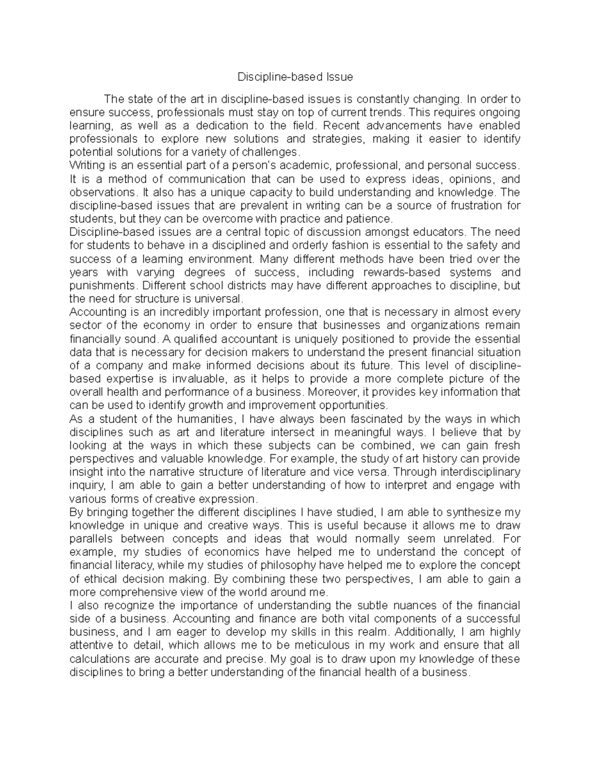 Discipline-based Issue - In order to ensure success, professionals must ...