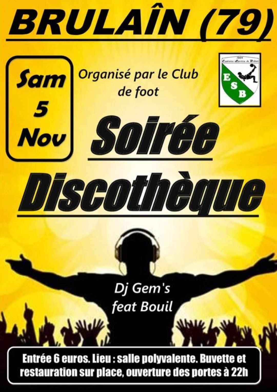 Une soirée discothèque à Brûlain le samedi 5 novembre • Niort info