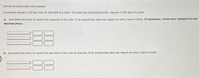 Entries for Discounted Note Payable A business issued a 60-day note for ...