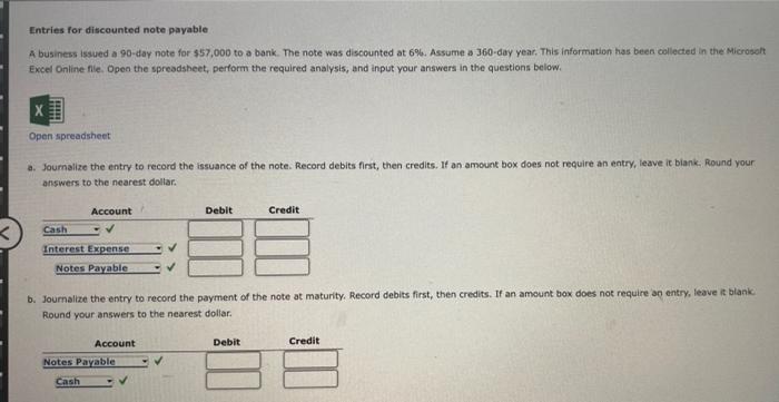 Solved Entries for discounted note payable A business issued | Chegg.com