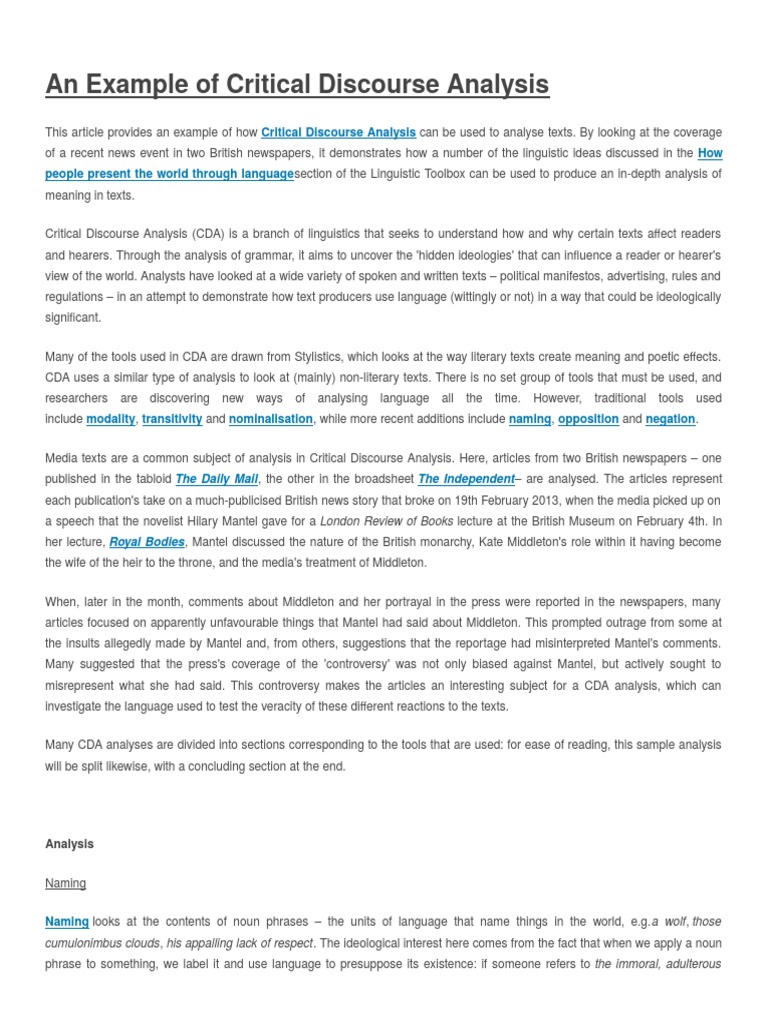 An Example of Critical Discourse Analysis (1) | Linguistics | Syntax