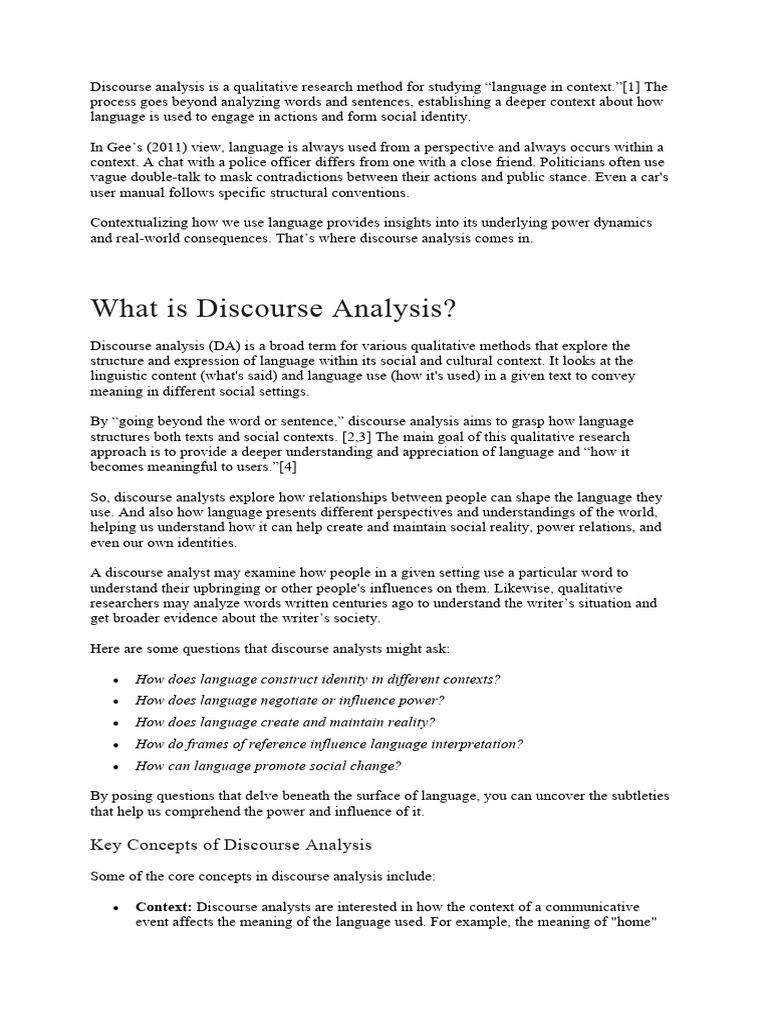 Discourse Analysis: Key Concepts & Types | PDF | Discourse | Analysis