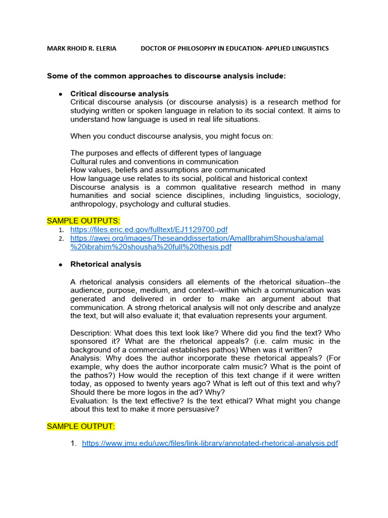 Discourse Analysis Paper Format - Information Technology - Studocu
