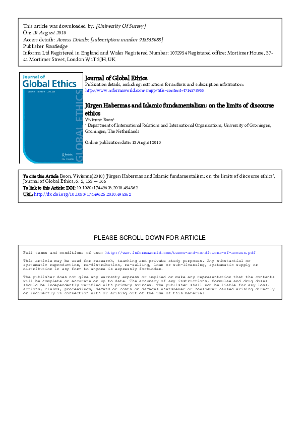 (PDF) Habermas and Islamic fundamentalism: On the Limits of Discourse ...