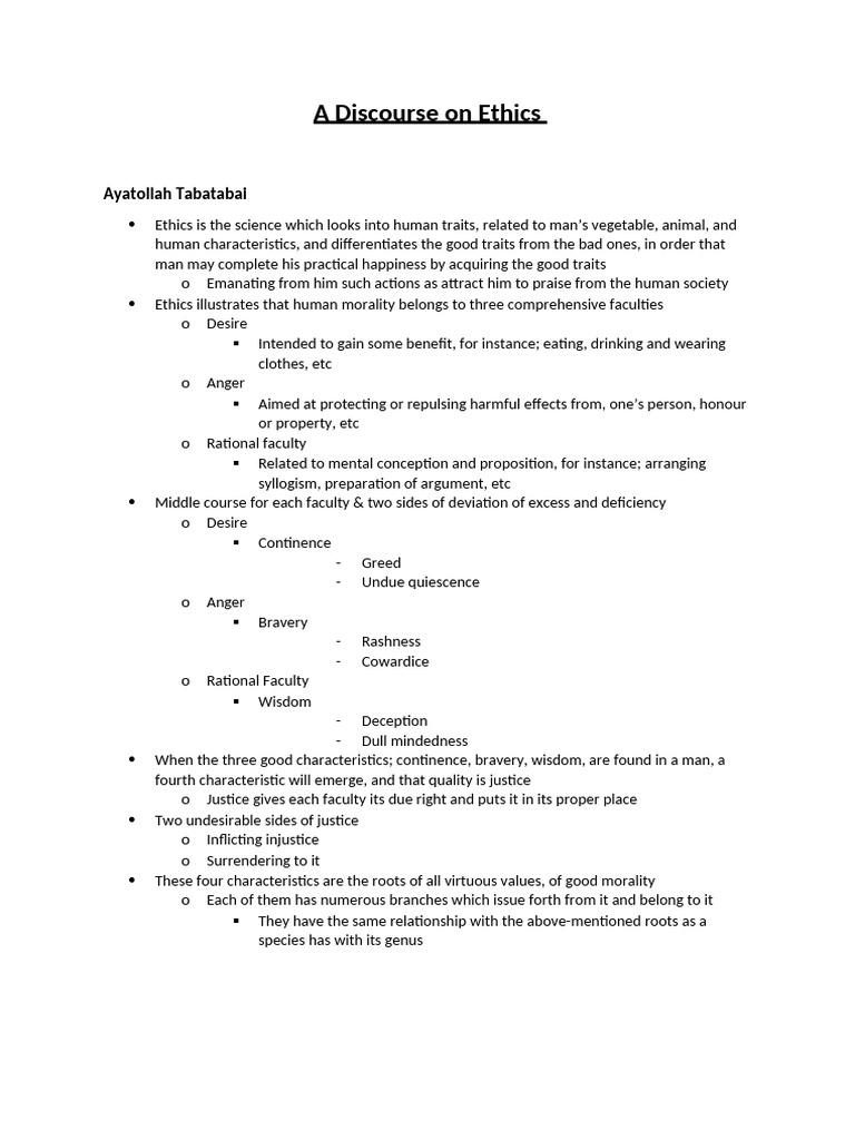 Discourse On Ethics | PDF | Virtue | God In Islam