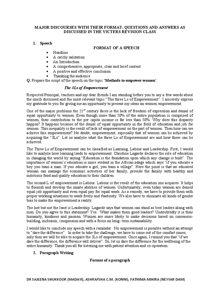 Discourses in English for class VI- X part I..How to write format ...