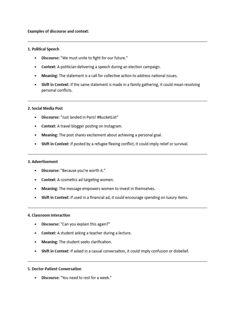 Examples of Discourse and Context | PDF