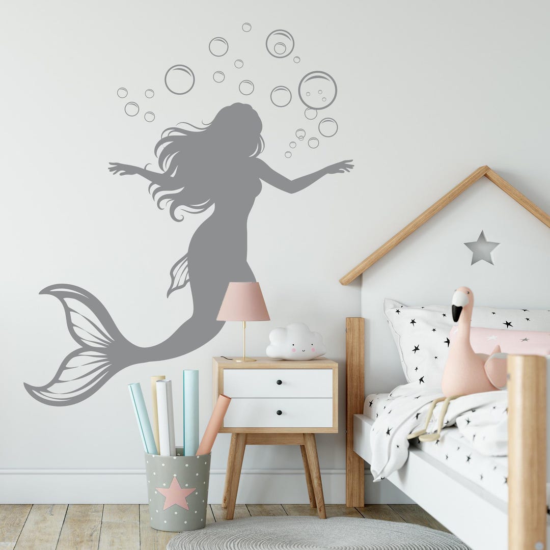Mermaid Wall Decal With Bubbles, Kids Bedroom Vinyl Wall Art ...