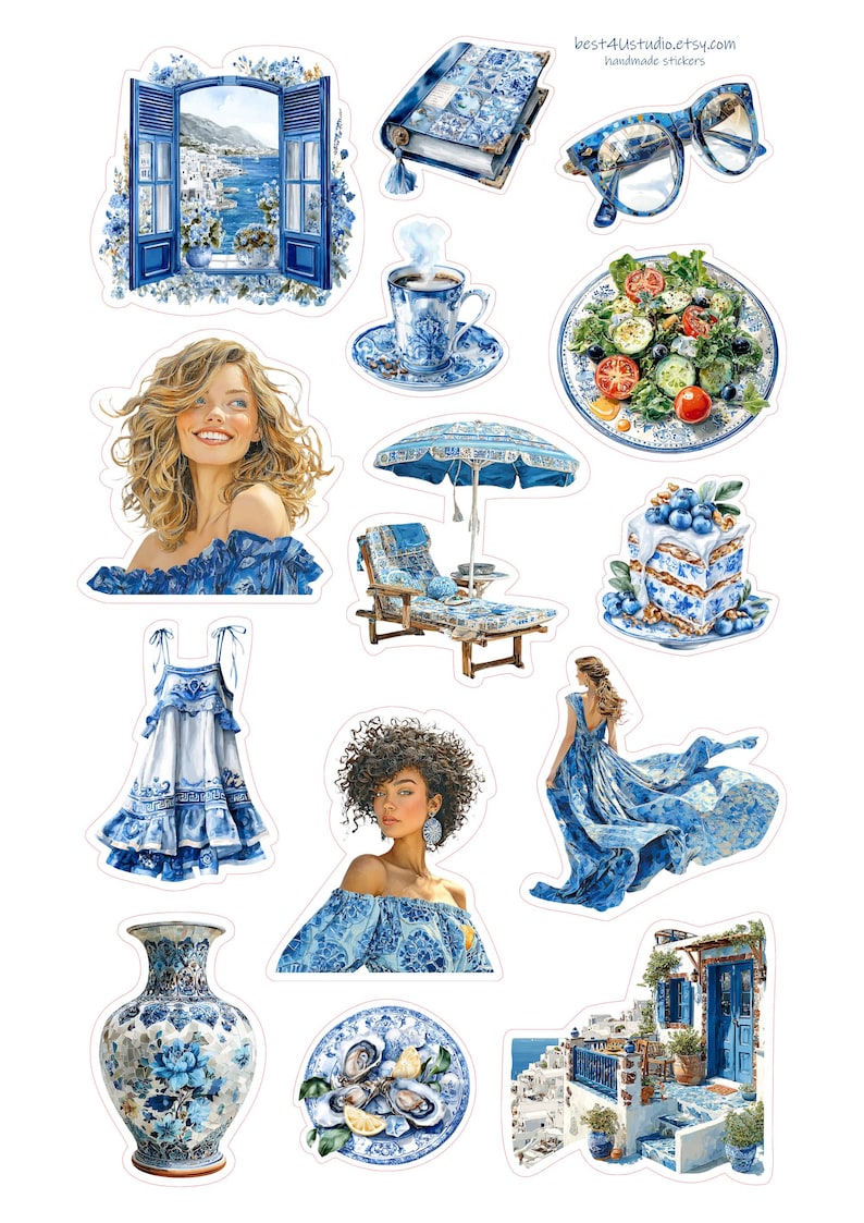 Greek Coastal Sticker Set Blue Mediterranean Summer Planner Journal ...