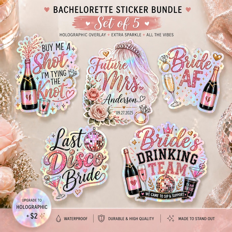 Bachelorette Party Stickers – Bride Tribe, Future Mrs., Last Disco ...