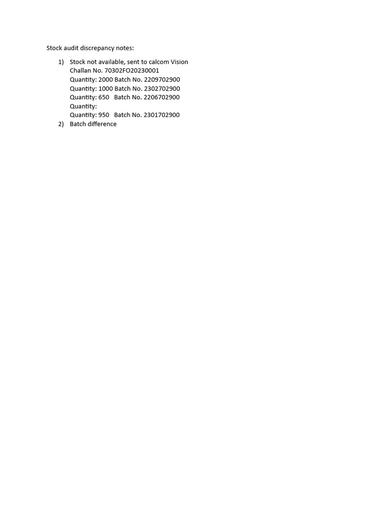 Stock Audit Discrepancy Notes | PDF