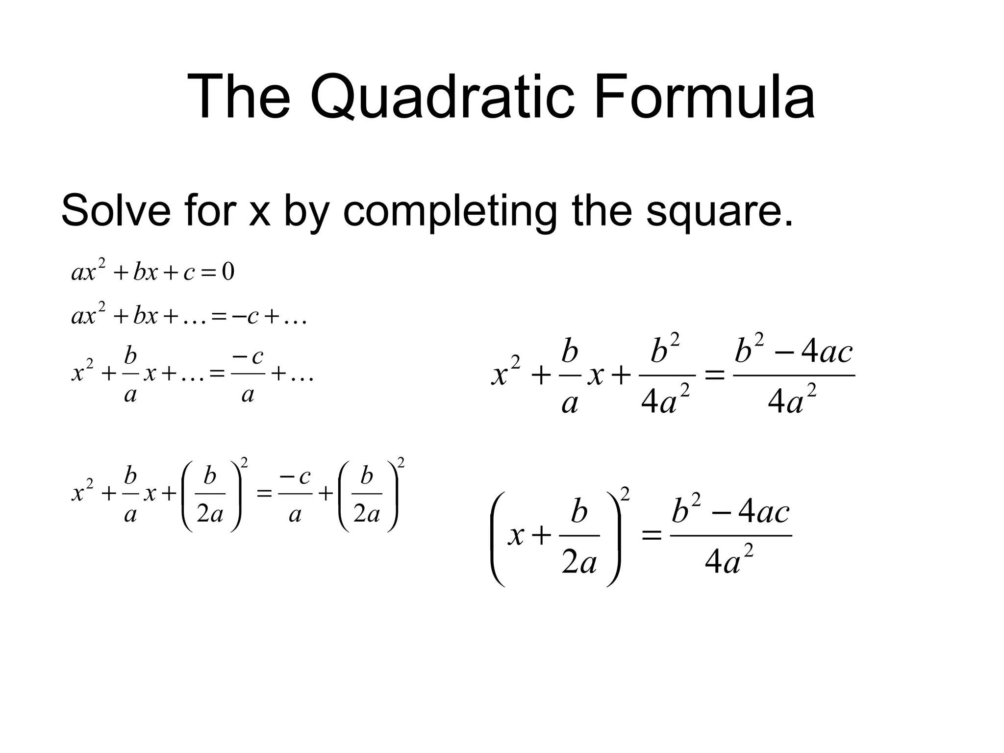 Lesson 15 Algebra of Quadratics The Quadratic Formula