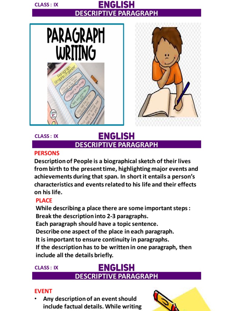Descriptive Paragraph Writing Format Class 9 Examples, Questions