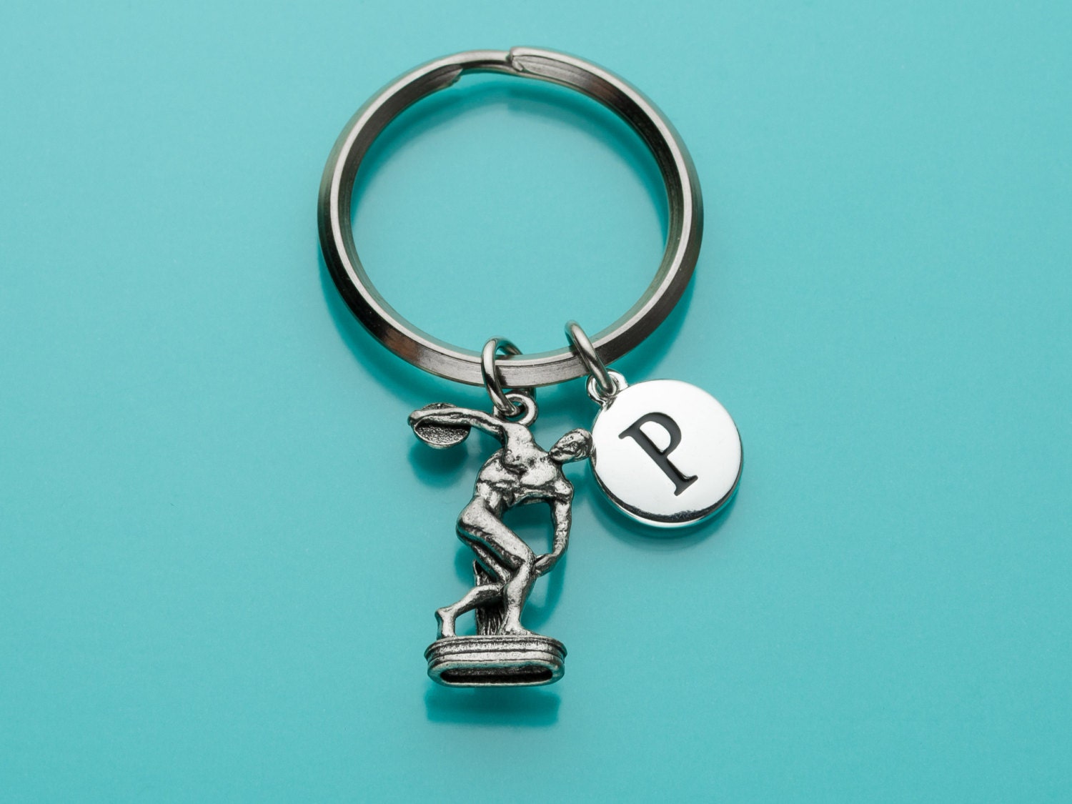 Discus Thrower Keychain, Discus Thrower Key Ring, Initial Keychain ...