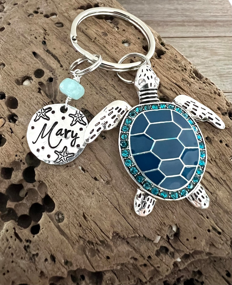 Sea Turtle Keychain, Personalized Disc, Girls Beach Trip, Beach Wedding ...