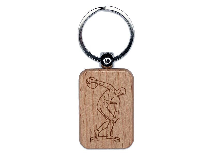 Greek Statue Discus Thrower Discobolus Engraved Wood Rectangle Keychain ...