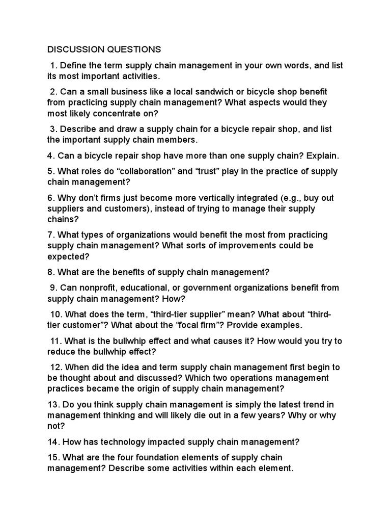 Supply Chain Management Discussion Questions | PDF | Lean Manufacturing ...