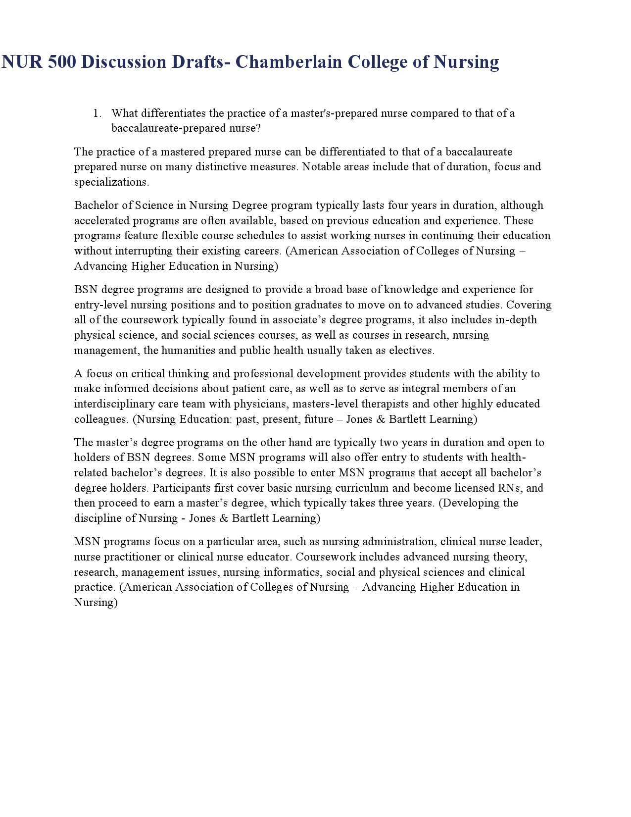 NUR 500 Discussion Drafts- Chamberlain College of Nursing