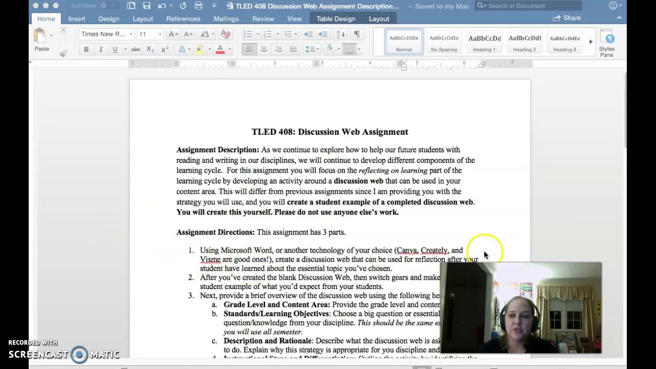 Reflective Strategy: Discussion Web – English Class With Ms. White