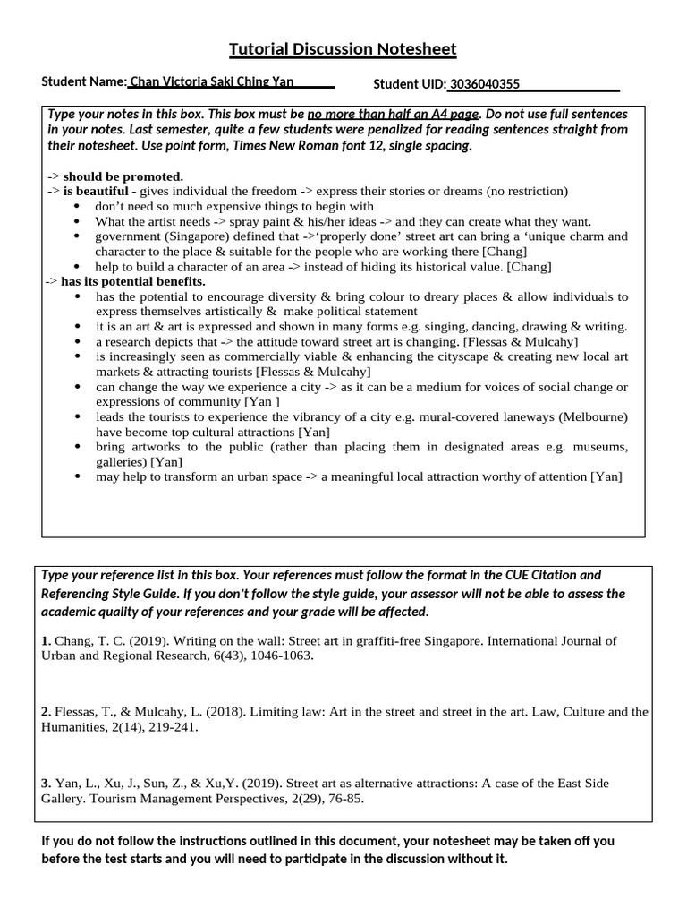 Tutorial Discussion Notesheet - Week 8 | PDF